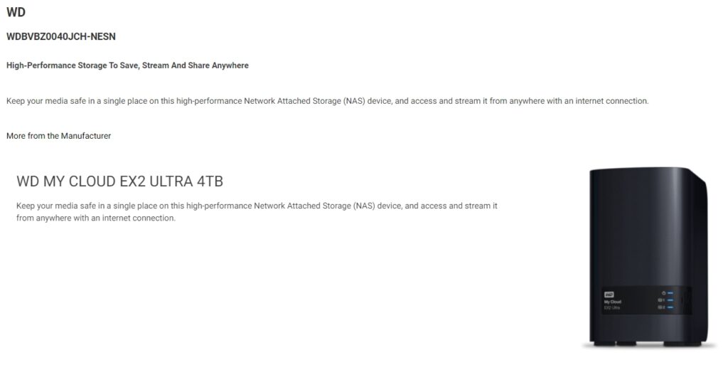 WD Cloud WDBVBZ0040JCH-NESN My EX2 Ultra Network Attached Storage – NAS, 4TB Total Hard Drive Capacity Installed, 1GB Standard Memory, My Cloud OS 3