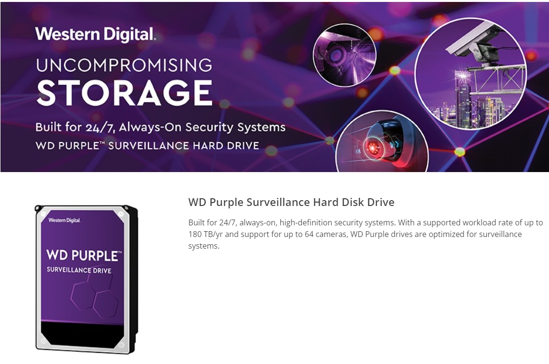 The WD Purple Drive Is Designed For Both Dvr And Nvr Security Systems, And Is Compatible With Many Of The The Leading Surveillance And Security Manufacturers. We Can Help You Find The Perfect Storage For Your System.