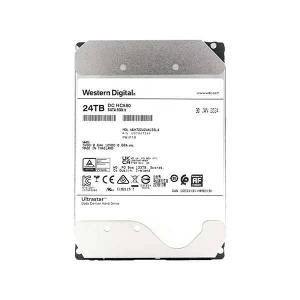 WD Ultrastar DC HC580 24TB Enterprise HDD – SATA 6Gb/s, 7200RPM, 512MB Cache | Helium-Sealed, CMR, 2.5M MTBF for Server & Data Center