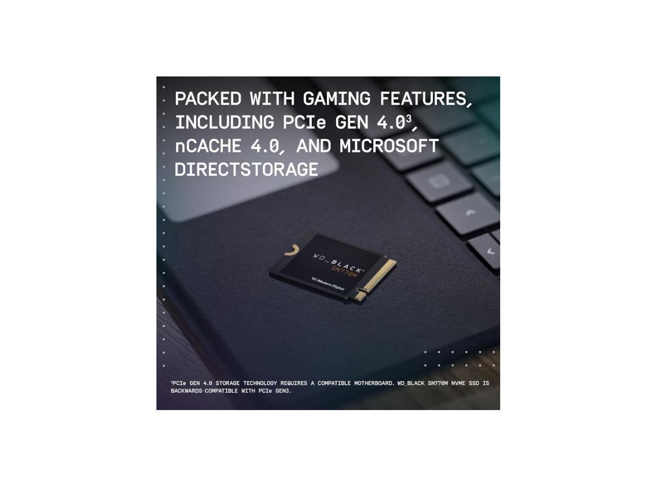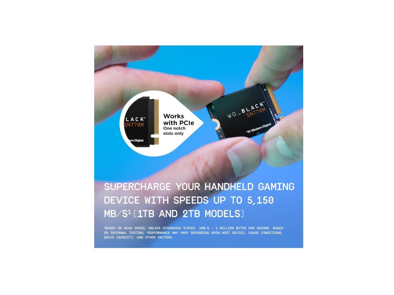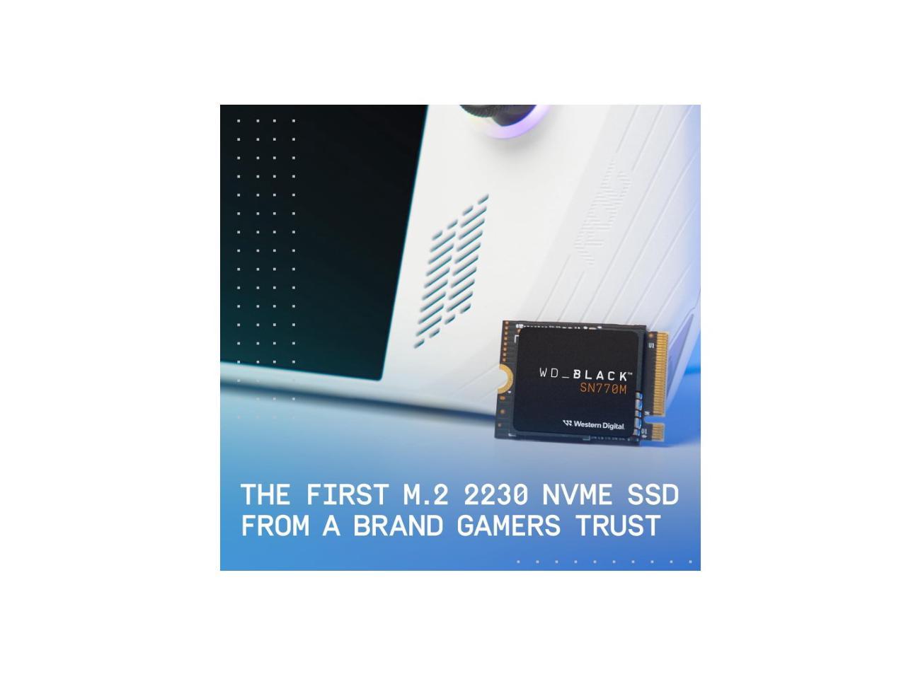 • Introducing the WD_BLACK™ SN770M SSD, the first M.2 2230 NVMe™ SSD built from a brand gamers trust.