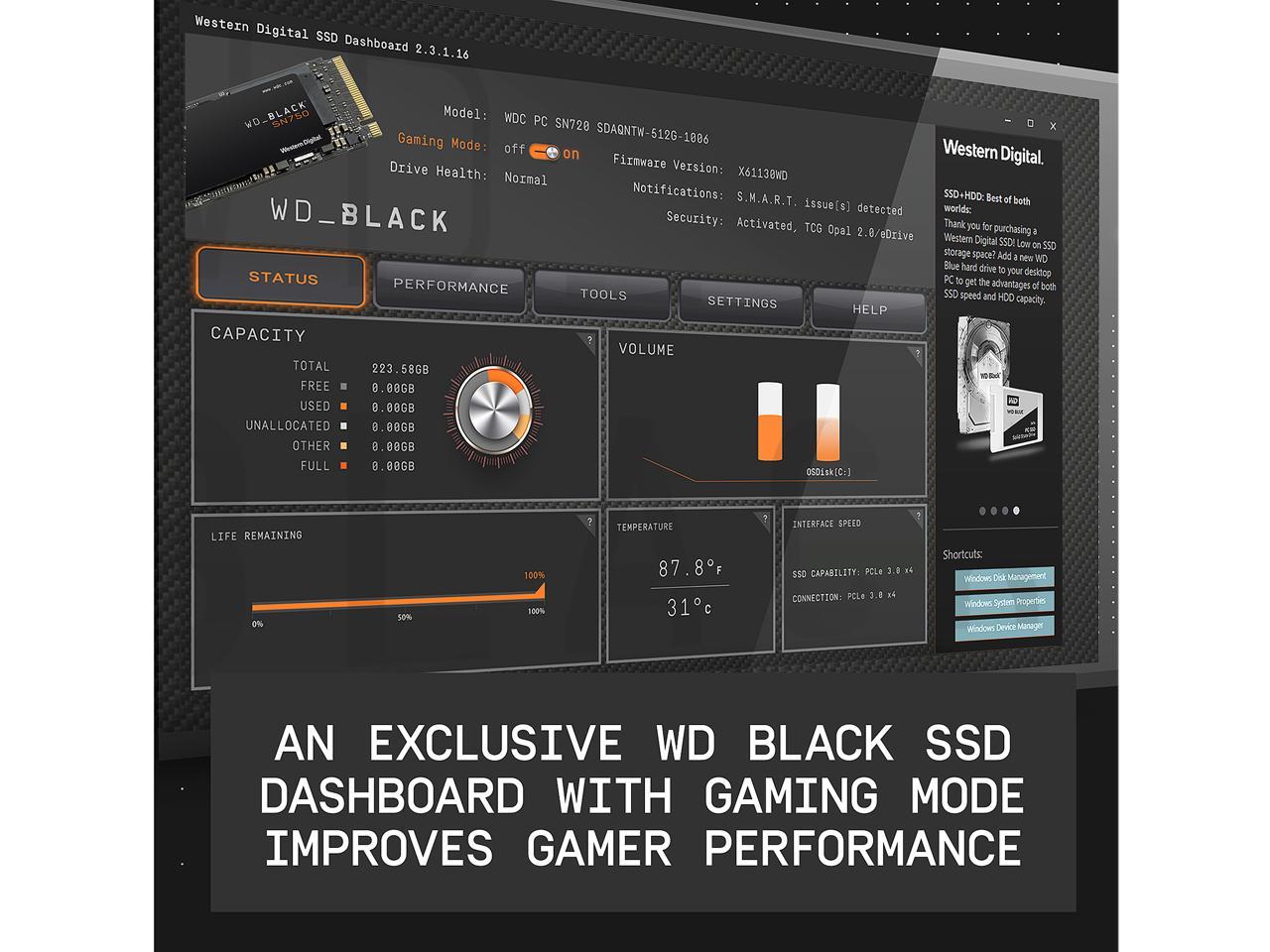 - An exclusive WD BLACK SSD dashboard with gaming mode improves game performance.
