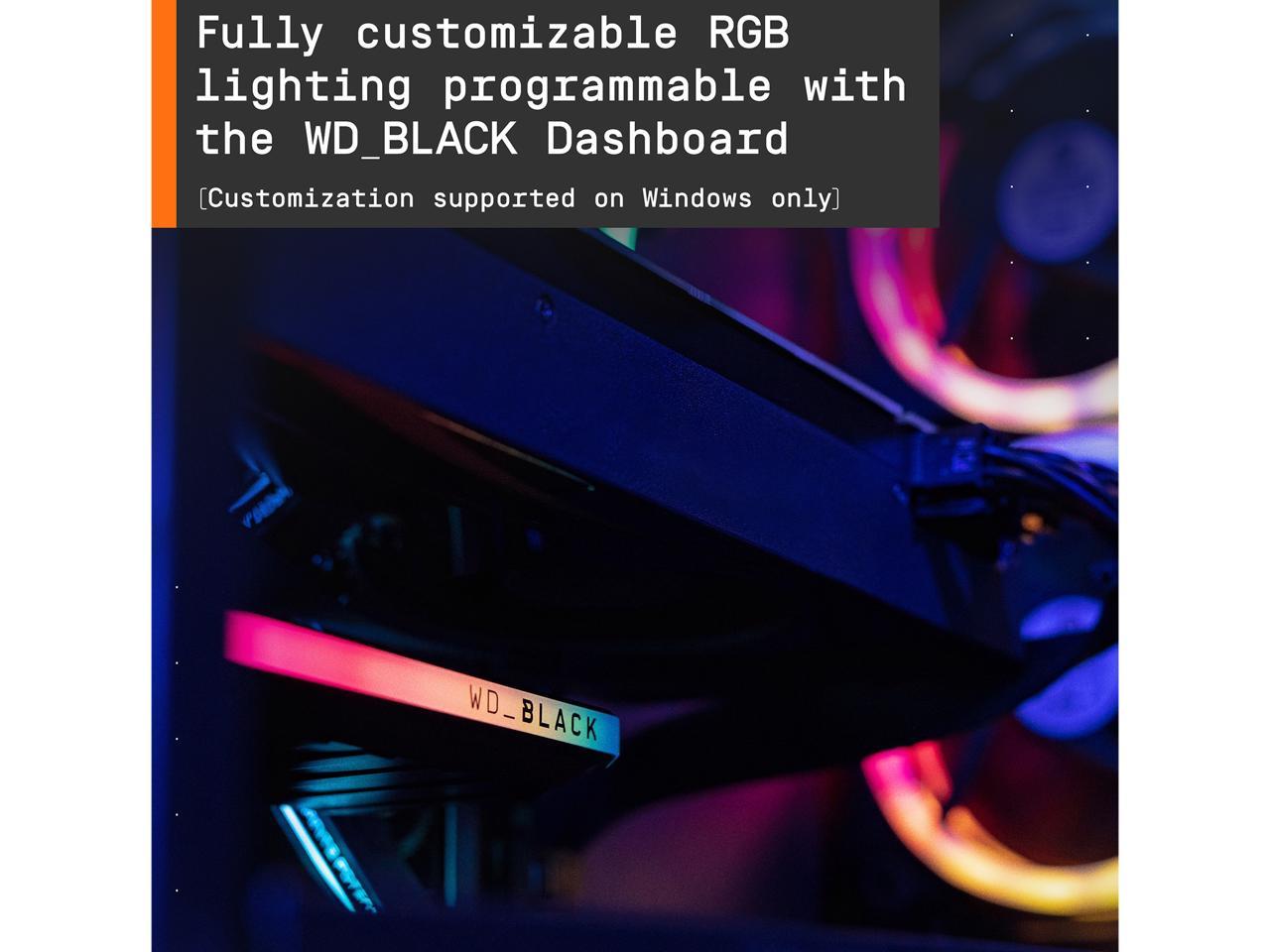 - Customizable RGB lighting with 13 LED pattern effects programmable with our WD_BLACK Dashboard, or seamlessly integrate with motherboards from major brands (Windows only)